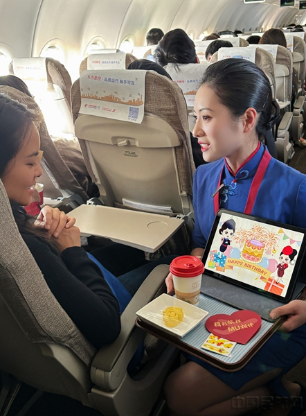 东航江西分公司空乘在新春航程中问候生日旅客(东航江西分公司供图)