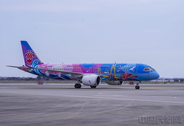 《中国民航报》、中国民航网 记者郭瑛 报道:3月16日10:44分,南航C919型国产大飞机“大美湾区号”彩绘机从广州白云机场起飞,正式开始执飞广州至温州航线。12:05分,飞机平稳降落在温州龙湾国际机场后,缓缓穿过象征民航最高礼仪的“水门”,标志着C919国产大飞机在该航线的运营正式拉开序幕。