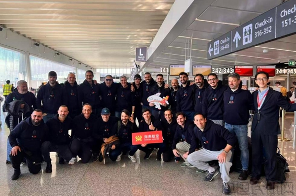 中国民航网 通讯员符毓望、杨映娟 报道:近日,意大利罗马工程师协会足球队一行20余人陆续抵达新海航海南航空值机柜台,启程飞往中国贵州,参加榕江“村超”足球交流赛。这支由工程师、建筑师、医生等不同职业背景人士组成的球队,将在中国乡村绿茵场上展开一场跨越国界的足球交流,以球为媒,感受中国草根足球的独特魅力与乡土活力。