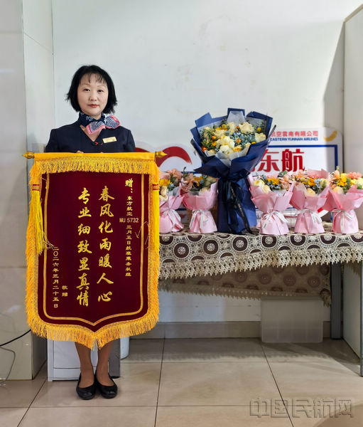 康复后,旅客及家属始终记着这份云端温情,特意定制锦旗专程前往东航云南公司当面致谢。面对这份认可,机组表示:“保障每一位旅客的安全,是我们的职责所在;旅客的平安与认可,便是我们前行的最大动力。”