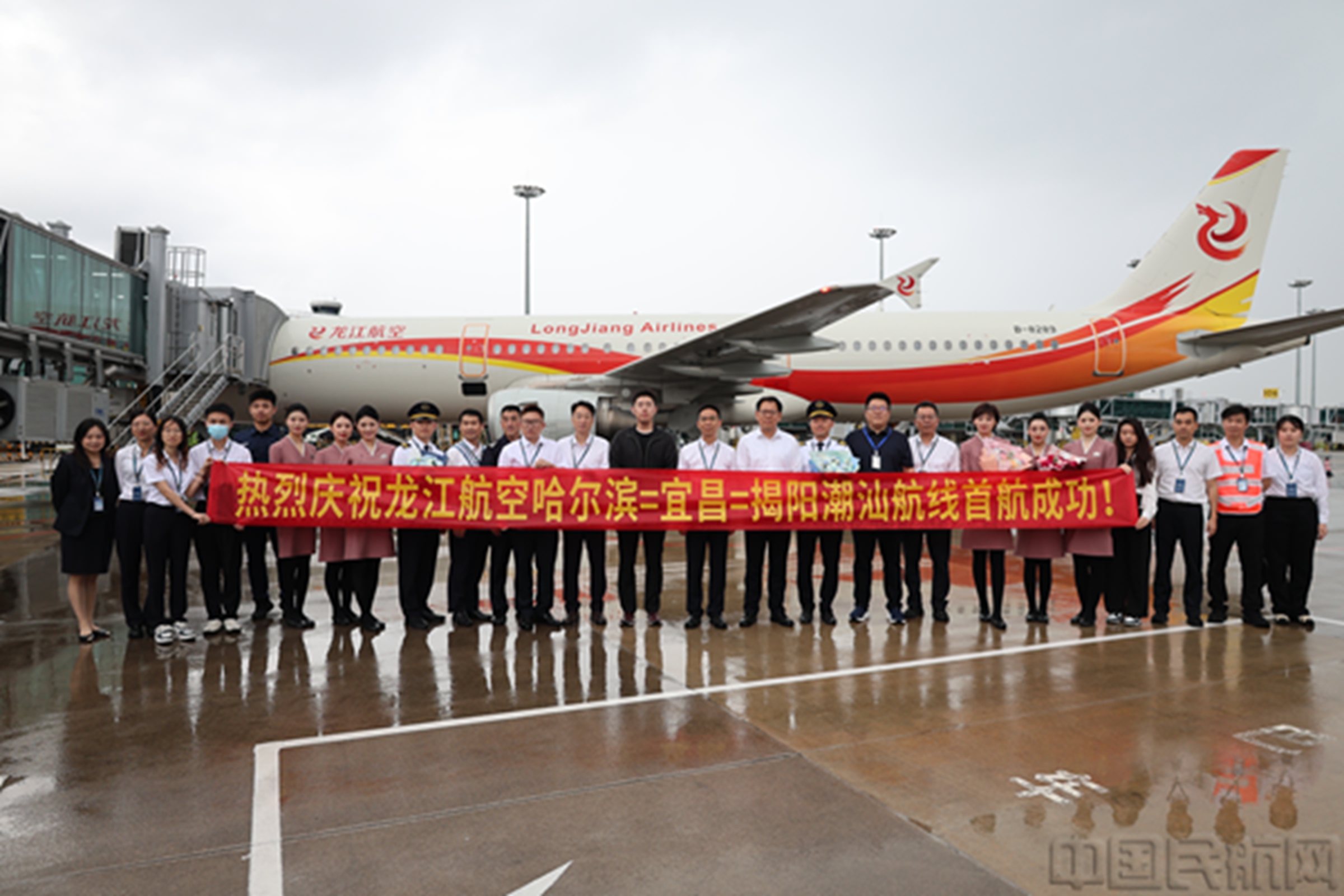 《中国民航报》、中国民航网 记者冯智君 报道:4月29日16时35分,龙江航空LT6627航班平稳降落在揭阳潮汕机场,标志着哈尔滨—宜昌—揭阳航线正式通航。随后在揭阳潮汕机场机坪举行首航仪式。