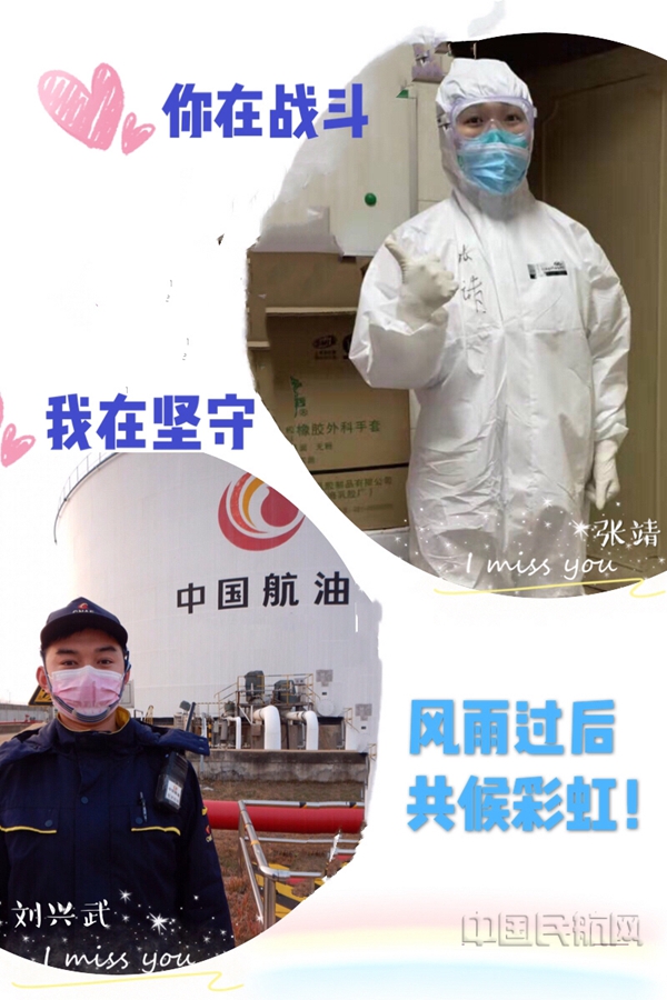 “收到,请领导放心,保证完成工作任务!”“您不用担心我俩,单位早就给我们准备好了饺子啦!”“宝贝,要听爷爷奶奶的话,爸爸妈妈很快就会回来接你的!”年三十,接到单位电话,本要和家人除夕夜团聚的中国航油内蒙古分公司赤峰中心供应站加油二分队队长初海杰,毅然决然选择火速返岗,奔赴疫情防控最前线,把年仅三岁的孩子交给年迈的父母照看,这是临走前他和领导、孩子、父母说的三句话,话语的背后,有难舍的牵挂,也有笃定的初心。他的爱人是赤峰民航机场安检员,他俩志同道合,默契地共同做出“舍小家、顾大家”的决定,孩子哭闹着不让爸爸妈妈走,他们佯装狠心,用力甩掉孩子抓着他们衣襟的小手,可谁知道一转身两个人都哽咽了……他们深知,虽没有在武汉一线的医护人员那么的伟大,但作为民航人,他们必须要为医护人员保驾护航!没有一个冬天不可逾越,危难之际的勇敢“逆行”是为了未来每一天的阳光灿烂!武汉,请你挺住,你身后有千千万万个我们!