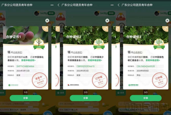 在线上,分公司团委坚持连续四年于“蚂蚁森林”平台开展植树合种植活动,组织团员青年每日轮流“浇水”,已成功于延安和邢台认种侧柏两颗,在今年3月12日再次于延安认种山杏一颗。青年员工积极开展沟通,获得种植进度的持续性汇报,并在团员青年微信群内科普植树养护及环保知识,积极为国家三北万里“绿色长城”构建工作做出贡献。