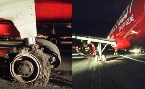 亚航客机降落轮胎爆裂 图片来自:马来西亚《光华日报》