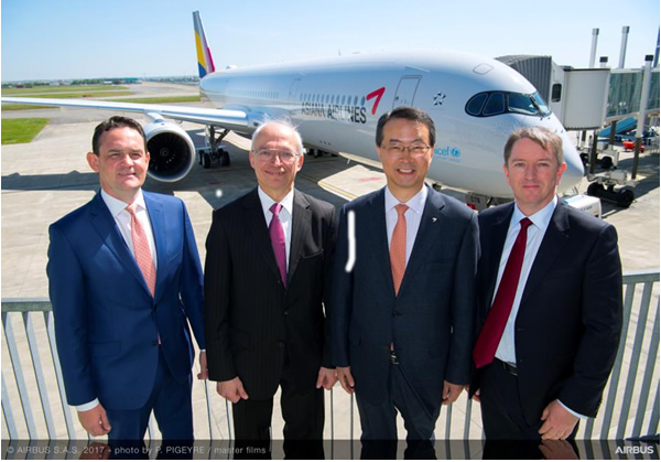 韩亚航空首架空客A350XWB宽体飞机交付