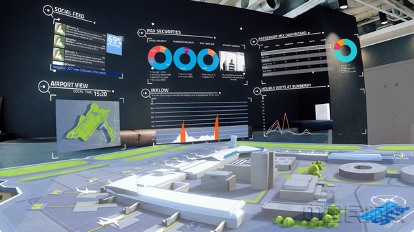 针对该项目,SITA Lab 通过 SITA Day of Operations技术——正是赫尔辛基机场所采用的技术,提供一种全新的可视化方式并与机场运营数据(包括航班动态、旅客动态及零售分析)进行互动。操作人员佩戴全息镜头眼镜,将一组屏幕与机场的三维视图整合,即可将数据仪表盘上的事件与机场的沉浸式实时模型相关联。