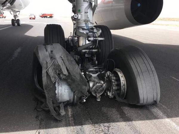 据悉,这架飞机原先从曼彻斯特起飞抵达特内里费南机场。降落时,当飞机滑轮碰到地面时,发生巨响。随后现场工作人员发现飞机的航空轮胎发生爆炸。