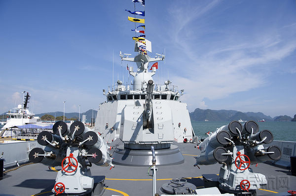 中国民航网 通讯员李方虹 摄影报道:3月26日,兰卡威第十五届海事和航空防务展在马来西亚如期开展。本次海事航空防务展最大亮点是中国人民解放军海军岳阳舰导弹护卫舰受邀参加,这也是中国人民解放军海军首次派出军舰赴兰卡威参加综合性防务展。来自中国大陆参加本届航展的媒体及军迷们在异国他乡登上祖国的军舰倍感自豪。