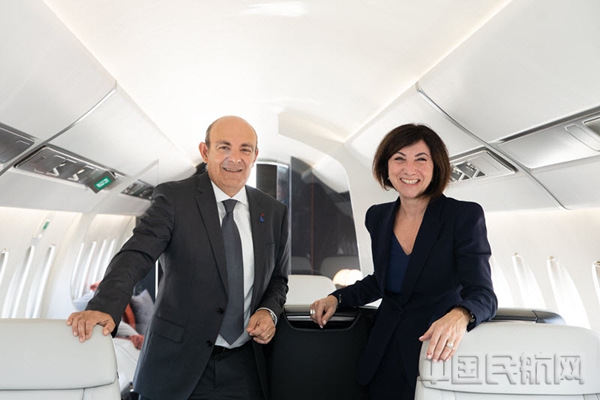 达索航空董事长兼首席执行官Eric Trappier (左) 与普惠加拿大总裁戴穆妍(Maria Della Posta)由(右)