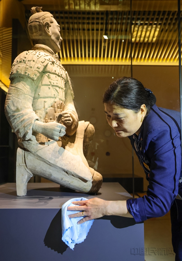 《中国民航报》、中国民航网 记者路泞 报道:近日,西部机场博物馆第三轮国宝展正式就位,秦始皇帝陵博物院编号6154的跪射俑历经65公里、3小时50分的押运,在春雨中“抵达”西安咸阳国际机场T5航站楼“珍宝馆”,开启春日“出差”之旅。这是该馆第三次将国宝真品引入机场展出。