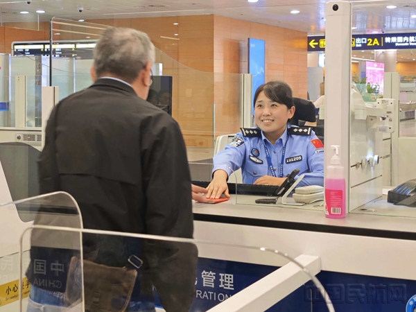 移民管理警察为外籍旅客办理入境边检手续(汤云崝/摄