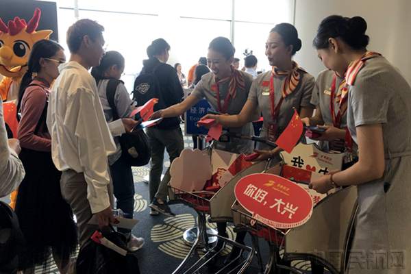 【视频】首都航空开始登机,为首航旅客发放纪念品