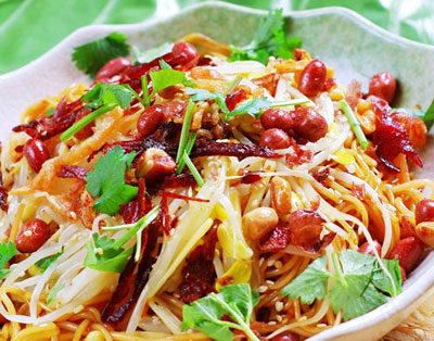 海南粉:米粉类小吃在海南非常普遍,海南各地有售,是特别有吸引力地方小吃。发源远溯福建省,近推海南澄迈县。海南粉有汤粉、腌粉、炒粉等。吃法:腌粉以特殊佐料,配上葱花、香菜,味道首推澄迈,海口腌粉亦有名气。汤粉放在佐料汤中,以兼具清甜、淡酸、微辣的陵水县酸粉为最。炒粉以琼海市塔洋镇最为出色。 汤粉贵在汤好,汤用多种原料熬成,冲调粉条,配上牛肉干、花生、竹笋等配料和佐料,“味道好极了”! 腌粉以腌技见长,一碗粉要用10余种佐料腌制,这些腌料往往是各店摊自制,据说配方密不告人。 炒粉妙在火候,炒时加猪肝、瘦肉、葱,并用生粉打芡,吃时再撒上胡椒,香味扑鼻。