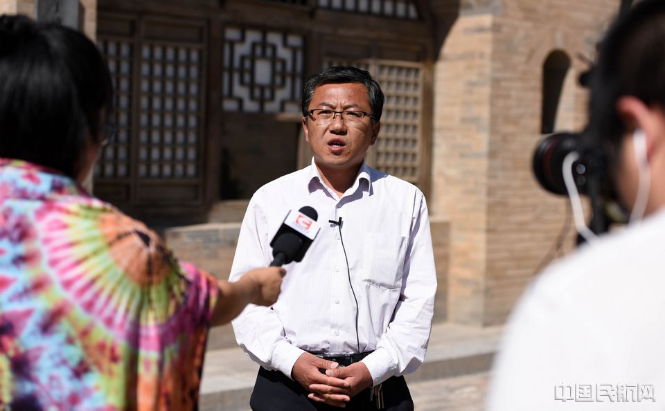 采访于成龙故居负责人(张哈斯巴根/摄)