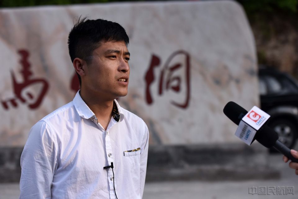 采访白马仙洞负责人(张哈斯巴根/摄)