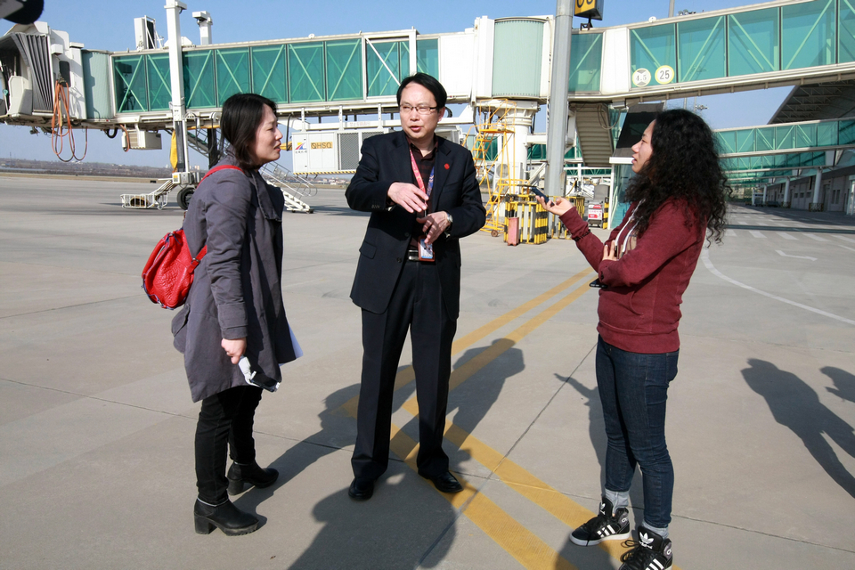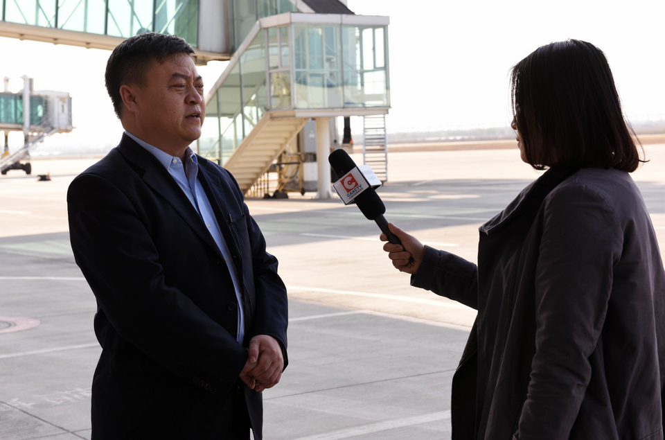 山西运城 采访关公机场经理(张哈斯巴根/摄)