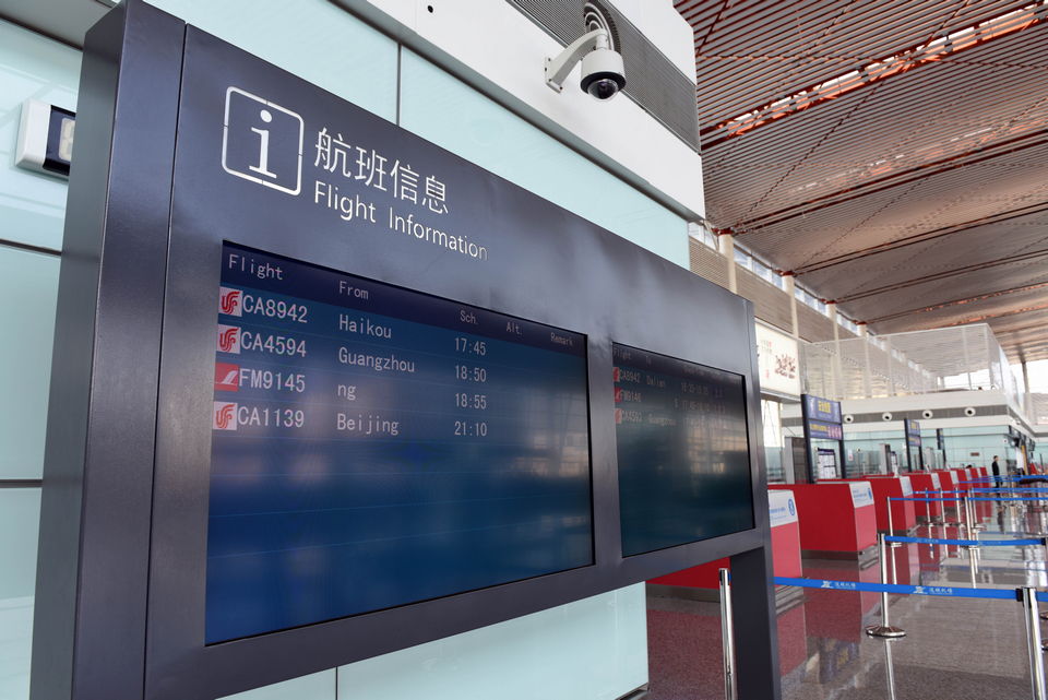 山西运城 关公机场航班信息看板(张哈斯巴根/摄)