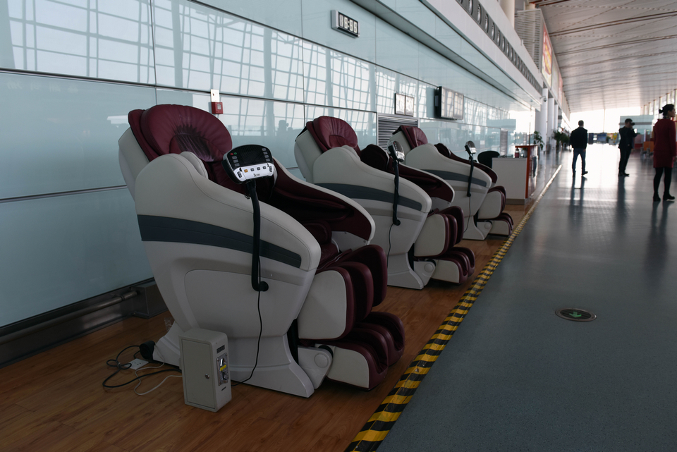 山西运城 关公机场候机楼按摩椅设施(张哈斯巴根/摄)