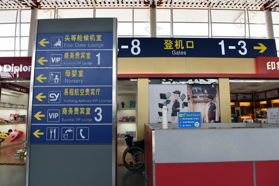山西运城 关公机场候机楼指示牌(张哈斯巴根/摄)