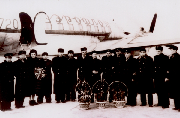 图为1955年1月1日中苏民航公司最后一个航班的机组人员合影