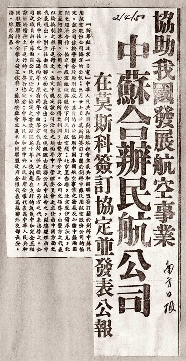 1950年4月2日,《南方日报》报道中苏合办民航公司的消息