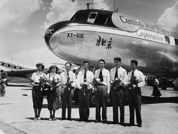 执行“八一”开航北京-天津-汉口-重庆航线的机组人员合影