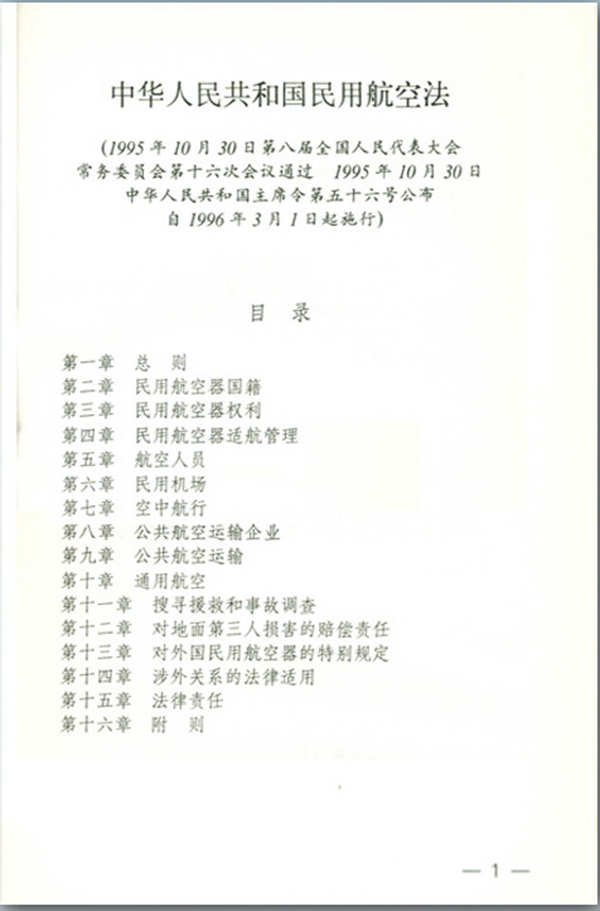 《中华人民共和国民用航空法》单行本目录