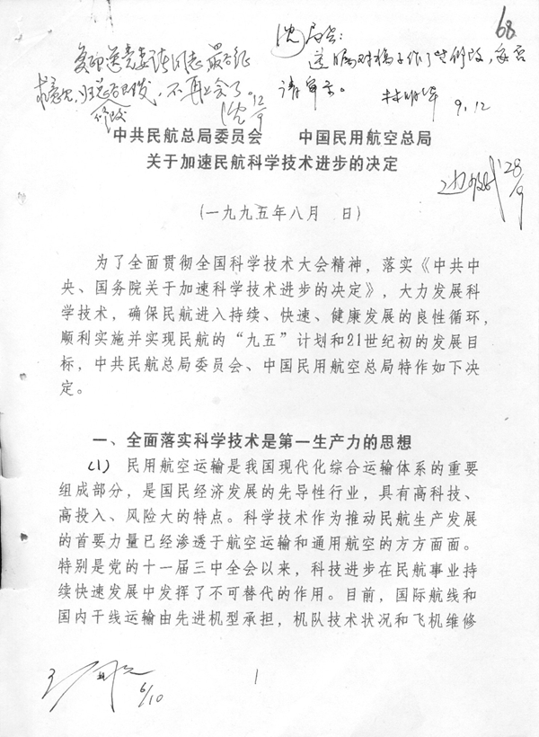 《关于加速民航科学技术进步的决定》底稿