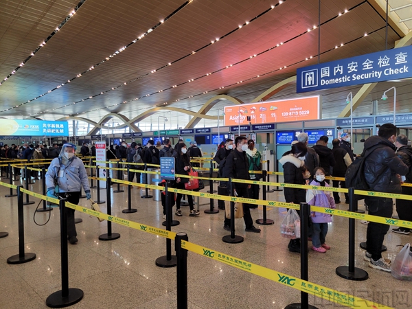 中国民航网讯:2023年1月7日是春运第一天。今年的春运从1月7日开始至2月15日结束,为期40天。随着近期一系列优化调整疫情防控措施的落地,旅客出行意愿明显增强,预计2023年春运客流规模总体呈快速恢复态势。据预测,昆明机场春运期间航班运输起降预计3.2万架次,同比增长6.46%,旅客运输量预计400万人次,同比增长20.75%。