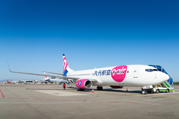 品牌焕新后喷涂全新涂装的九元航空737-800客机