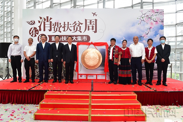 在6月16日上午的“爱心扶贫大集市”启动仪式上,东航集团董事长、党组书记刘绍勇,东航集团总经理、党组副书记李养民,以及云南省临沧市副市长赵贵祥一同到场为助农产品带货。集市汇集了东航集团及东航各地分子公司定点帮扶地区的助农产品,走出大山的茶叶、坚果、蜂蜜、土鸡、酱牛肉、咖啡、火腿、腐乳等农特产品和特色民族服饰,展现了东航产业扶贫的既有成果与广阔前景,参展的商家还将提取一定比例的销售额,返还用于当地的扶贫项目建设。