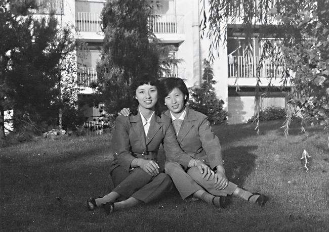 刘玉梅(左)和同事在巴黎的招待所留影。