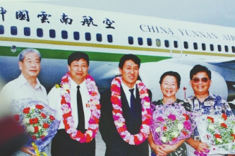 1998年,时任云南航空公司党委副书记的周凯(中)从美国接回飞机。
