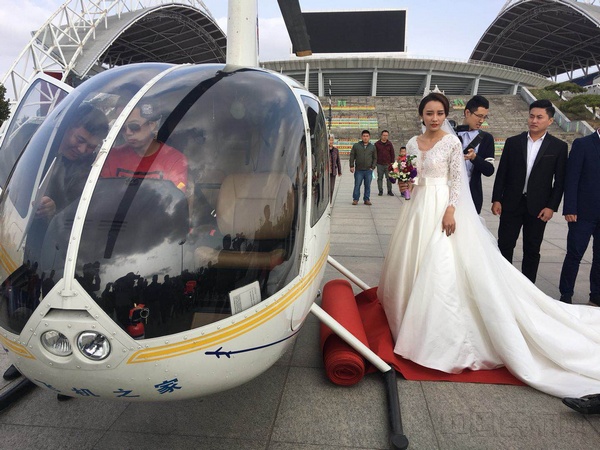 坐上直升机空中办婚礼 浪漫场面打动网友