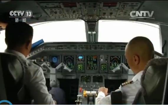 记者:“我现在的位置就是伴飞飞机的机舱。除了完成为C919充当开路先锋的任务之外,伴飞飞机还有一个重要任务,就是提供视频信号,飞行过程中,伴飞飞机与C919的距离保持在一公里左右,将通过这个舷窗来记录C919的飞行姿态,同时通过海事卫星将实时的画面传送回央视北京的总部,目前地面的信号试通一切顺利,但是首飞是一万英尺的高空,信号会怎么样?目前我们也没有十足的把握,希望接下来一切顺利,能够把首飞中C919最完美的姿态展示给大家。”
