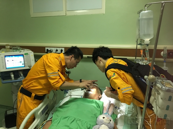 消息在网络中几经转发,被一位热心的媒体人士在某媒体群中看到了,他随即转发到民航医疗快线群中,希望有医疗团队能帮上忙,拥有丰富航空转运经验的广东民航医疗快线得知此事后,特事特办,由于患者及家属身处国外,电话不通,医疗快线工作人员几经周折,终于通过微信联系上患者家属,经过航空医疗救援专家团队远程诊断,病人情况危急,必须尽快进行转运。在反复沟通下,最终决定釆用战略合作伙伴“北京999”拥有的国内最先进的医疗救援B-1999固定翼飞机来转运患者,该飞机最大的优点是批复航班时刻速度快,各机场可优先起降,机上配备世界先进的全套医疗设备,转运过程中出现突发情况时,可以第一时间对患者进行抢救。同时,民航医疗快线还派出可英语交流的专业素质优秀医务人员,提前与印尼登巴萨机场方地勤服务沟通,开通了绿色的生命通道,务求最快最好地将患者运回祖国治疗。