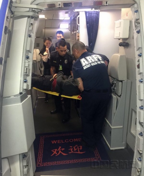 就在飞机放油、准备备降的同一时间,东航洛杉矶营业部塞班站接到应急保障指示后,立即上报北美营销中心,中心要求全力配合东航总部做好备降航班的应急处置。东航塞班站一方面致电当地代理,着手安排接机人员;一方面协调机场塔台,确保当地海关、出入境部门和救护车到场。MU727航班一落地,待命的急救人员立即登机,用担架将病人抬出客舱,送往市中心的医院就诊。