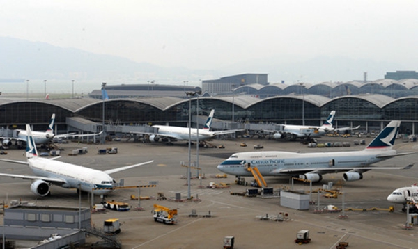 资料图片:停靠在香港国际机场的国泰航机。新华社记者 黄本强 摄