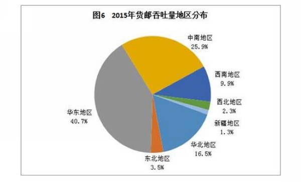 各机场中,年货邮吞吐量10000吨以上的有51个,比去年增加1个,完成货邮吞吐量占全部机场货邮吞吐量的98.4%;北京、上海和广州三大城市机场货邮吞吐量占全部机场货邮吞吐量的50.9%。全国各地区货邮吞吐量的分布情况是:华北地区占16.5%(16.9%),东北地区占3.5%(3.4%),华东地区占40.7%(41.1%),中南地区占25.9%(25.4%),西南地区占9.9%(9.7%),西北地区占2.3%(2.1%),新疆地区占1.3%(1.4%)。