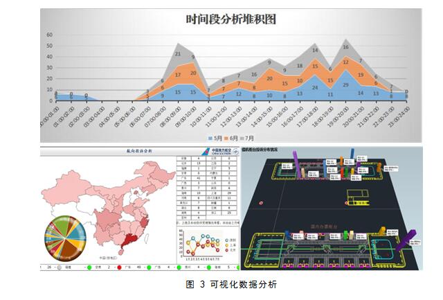 为提升精细化管理水平,精准发现旅客服务痛点,2015年11月,南航深圳地服部成立“数据分析项目组”,着力运行、服务数据的统计分析,通过对现有数据运用可视化的手段进行分析(图三),创新数据展现模式与分析方式,操作更简洁易懂。