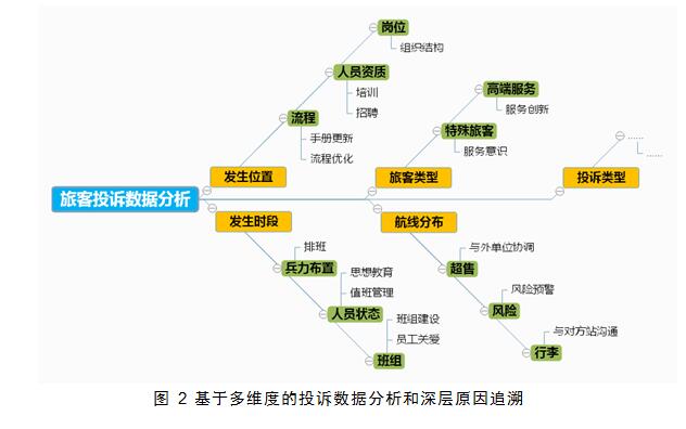 所有的安全、运行、管理最终呈现在旅客面前是服务水平,而投诉是旅客对服务不满的最终处理手段。以往对待旅客投诉的态度主要以对涉事科室、员工的教育和处罚为主(图1)。南航深圳地服部通过对旅客投诉、服务差错数据的统计分析,从投诉、差错发生位置、时间、旅客类型、投诉类型、航线地域分布等方面对服务工作进行分类分解,直接找到服务痛点和风险源,每月部门、科室通过服务质量会对特殊案例进行讲评,有针对性地从员工业务能力、服务技巧,科室管理、班组建设等维度进行提升,对于一些自身内部无法解决的问题也可以有针对性的与外单位协调解决,最终由投诉找到管理、流程等方面的深层次问题,并从问题源头提出解决问题的方案,全面提升服务质量。(图二)